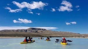 contrastes de la estepa y el agua turquesa glaciaria marcan